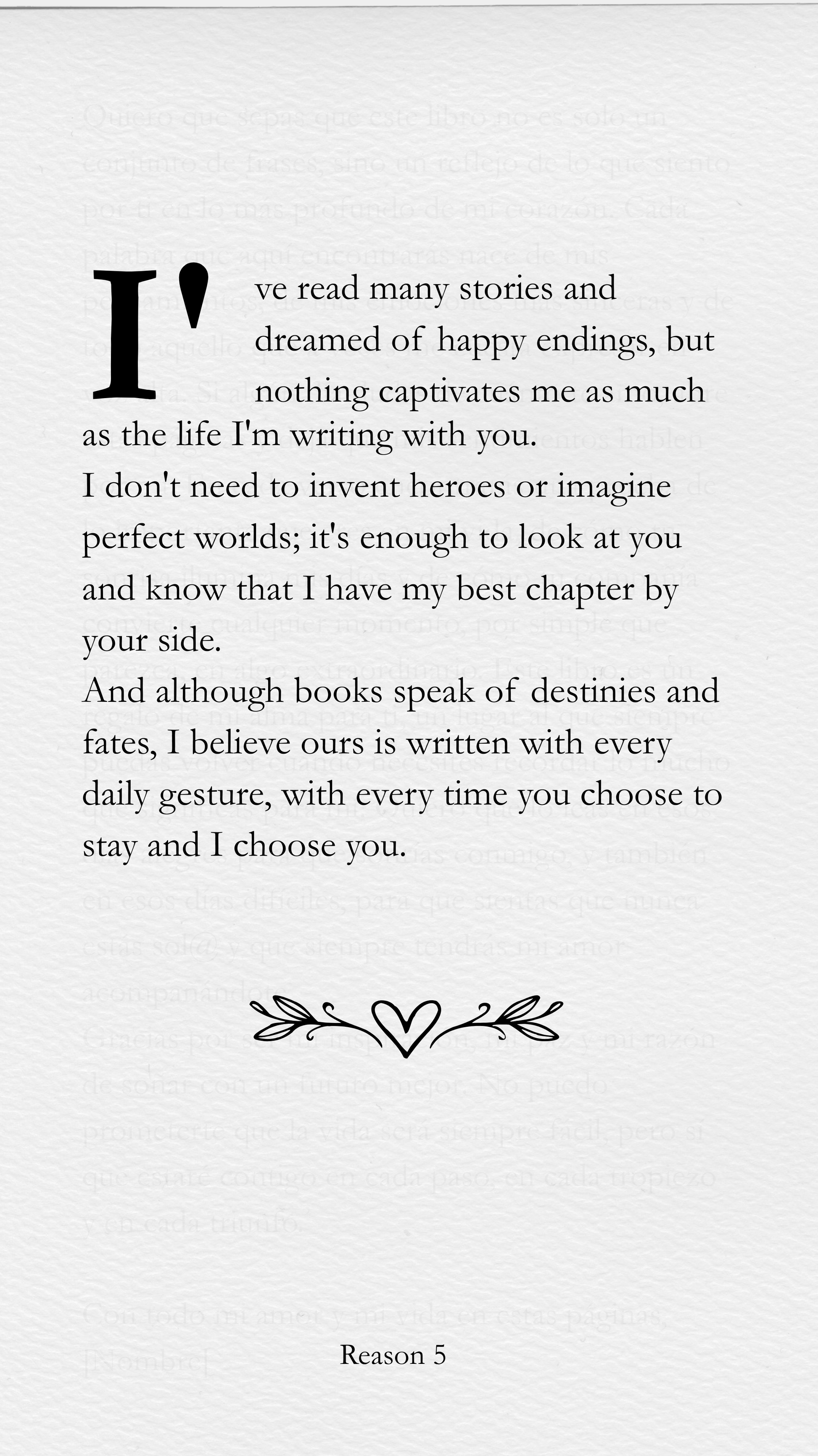 In this premium edition, every double-page combines a heartfelt reason to love written in the style of an intimate journal, alongside a romantic poem that transforms emotion into art. You can also personalize the book with your name as the author and include a custom dedication, making each copy a one-of-a-kind gift made from the heart.